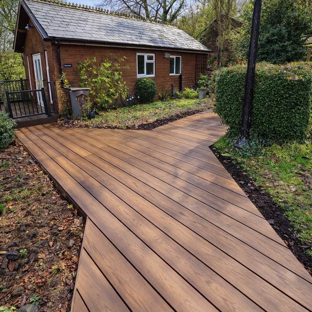 Composite decking is often the best choice for coastal areas as it resists moisture, salt air and rot. It's low maintenance and long-lasting, making it ideal for Isle of Wight properties exposed to the elements.